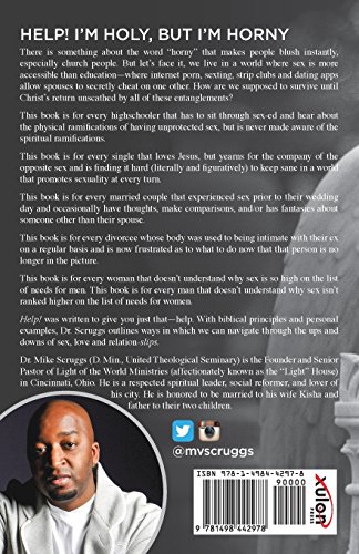 There is something about the word "horny" that makes people blush instantly, especially church people. But let's face it, we live in a world where sex is more accessible than education-where internet porn, sexting, strip clubs and dating apps allow spouses to secretly cheat on one other. How are we supposed to survive until Christ's return unscathed by all of these entanglements? This book is for every highschooler that has to sit through sex-ed and hear about the physical ramifications of having unprotected sex, but is never made aware of the spiritual ramifications. This book is for every single that loves Jesus, but yearns for the company of the opposite sex and is finding it hard (literally and figuratively) to keep sane in a world that promotes sexuality at every turn. This book is for every married couple that experienced sex prior to their wedding day and occasionally have thoughts, make comparisons, and/or has fantasies about someone other than their spouse. This book is for every divorcee whose body was used to being intimate with their ex on a regular basis and is now frustrated as to what to do now that that person is no longer in the picture. This book is for every woman that doesn't understand why sex is so high on the list of needs for men. This book is for every man that doesn't understand why sex isn't ranked higher on the list of needs for women. Help! was written to give you just that-help. With biblical principles and personal examples, Dr. Scruggs outlines ways in which we can navigate through the ups and downs of sex, love and relation-slips. Dr. Mike Scruggs (D. Min., United Theological Seminary) is the Founder and Senior Pastor of Light of the World Ministries (affectionately known as the "Light" House) in Cincinnati, Ohio. He is a respected spiritual leader, social reformer, and lover of his city. He is honored to be married to his wife Kisha and father to their two children.